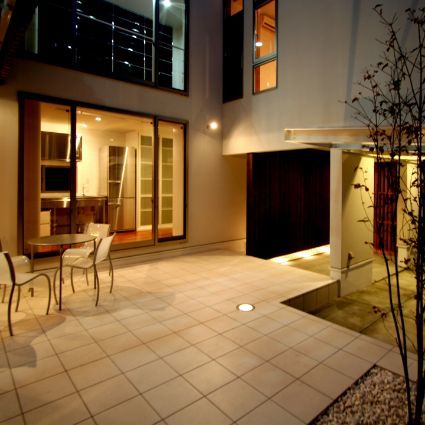 内外ともに白を基調とした事と、中庭側の大きな開口により、中庭及び各居室は、拡散光が溢れる明るく開放的な空間となっています。