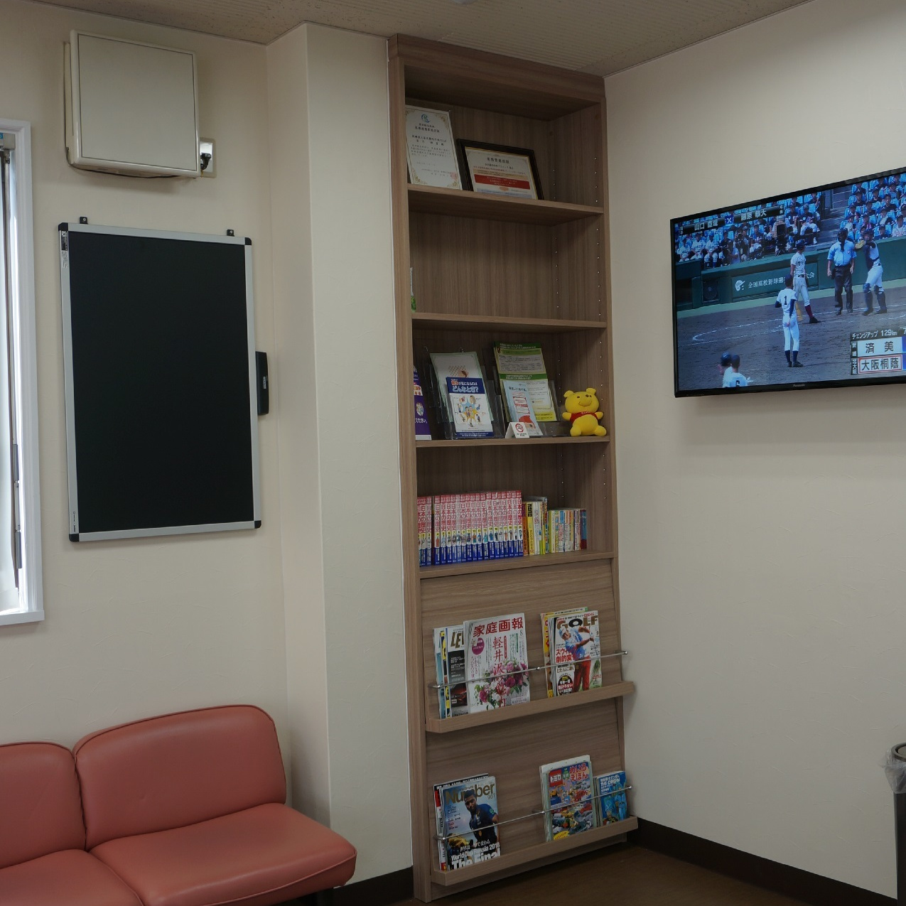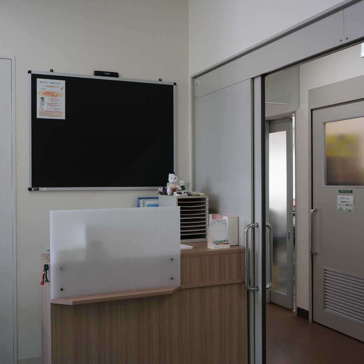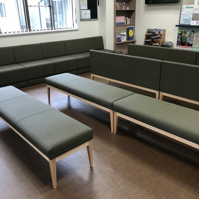 待合室は以前のピンク色のソファからモスグリーン色に変更し、フロアシートもフローリング調とすることで、落ち着いた雰囲気でお待ち頂けるように。