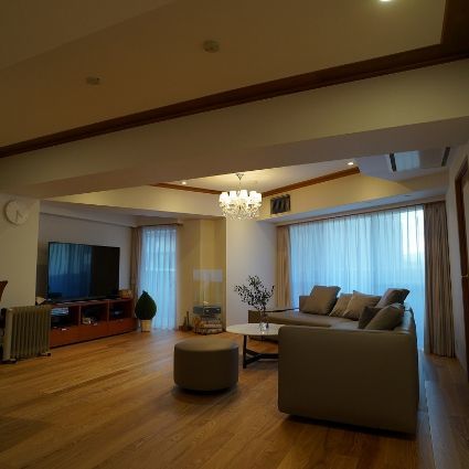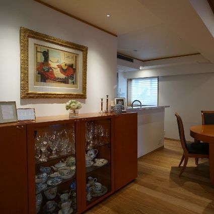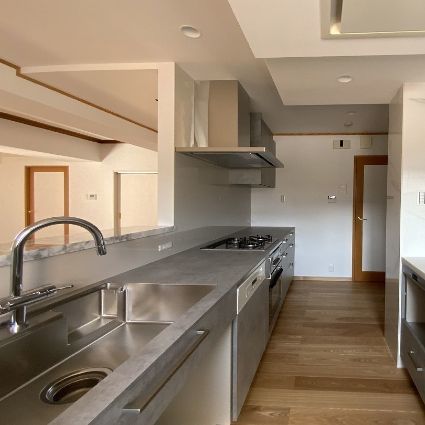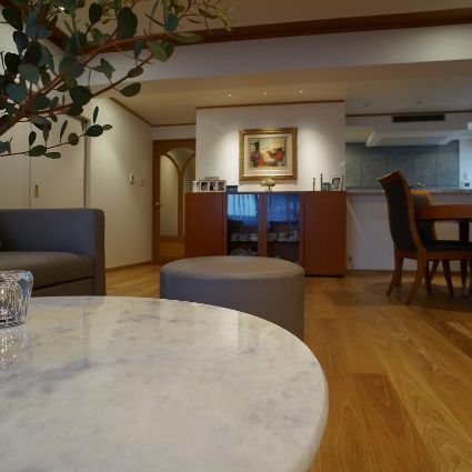 閉鎖的だったキッチンをオープンキッチンとし、隅に追いやられていたダイニングをリビングとの間に設けて、LDKを一体空間として広がりのある空間へと変えています。