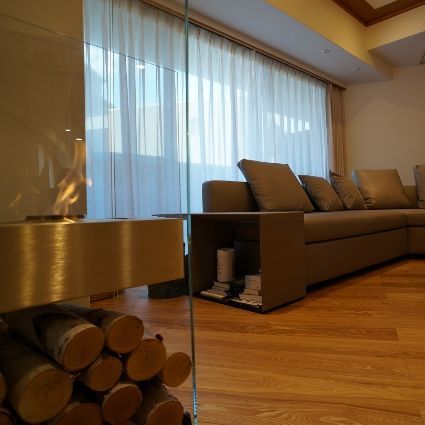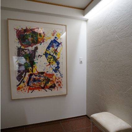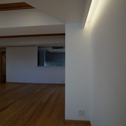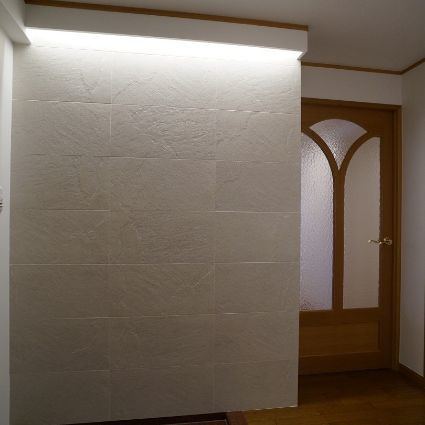 玄関部分にも正面に新設したタイル面を間接照明としており、来客時等の演出効果を狙っています。