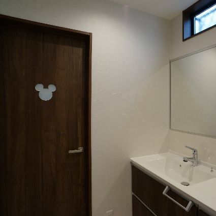 キッチンを起点として、洗面・ランドリー・浴室・トイレを集約させて効率的な家事動線とし、煩雑になりがちなランドリーと洗面を分けることで、不意な来客時にも手洗いを利用しやすくしています。