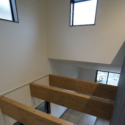 吹抜けに面した2階部分は、腰壁により緩やかに空間を仕切っており、趣味や在宅ワークなどの少し集中したい場合等にも使えるスペースに。