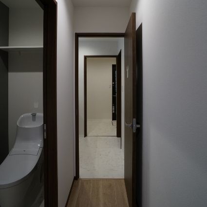 ファミリークローゼットをLDK奥に設け、乾燥後の衣類の移動を簡略化すると共にお出かけ前や帰宅時の着替えがスムーズに行えるように意図しています。