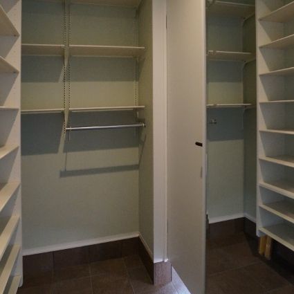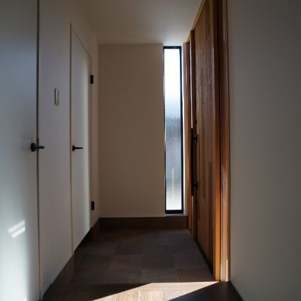 玄関収納は広めのシューズクローゼットとし、将来のベビーカーやゴルフバッグの置き場としても使えるように余裕のある空間づくりとしました。また、部屋の広さだけではなく、上足側にはコートハンガーを設けるなどの日常の使い勝手をお伺いしながら提案させて頂きました。