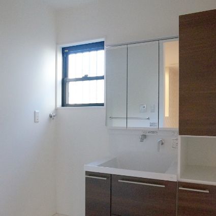 1階は出来るだけゆったりとしたLDKと水廻りを確保するため、寝室は2階にまとめて計画。洗面所は日々の使い勝手を考慮しLDKからの入口とし、トイレは音の問題を考慮して廊下側から出入りとするような動線に。