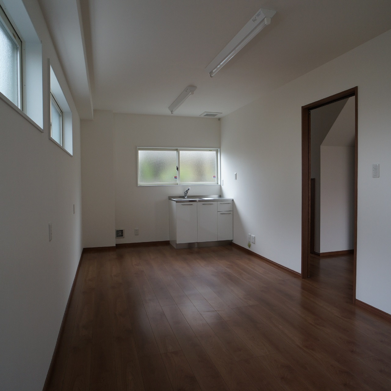 事務室は作業環境を考えてデスク上部の窓をハイサイドライトとする事で、明るさを確保しつつも作業面への不快なグレアを軽減させました。また水廻りは事務室専用として設ける事で、独立して利用が出来るような計画となっております。