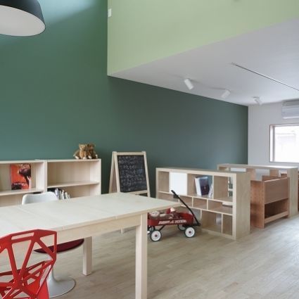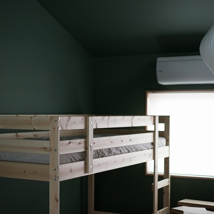 子世帯となる2階は、個室を設けずに大きな1LDKとして計画し、リビングスペースの中で道路側となる天井高の高い場所は、家族が共有するスペースとして想定しています。中庭側の天井の低い場所は、子供たちが机や本棚といった家具により、フレキシブルに断続する空間が形成出来るように。