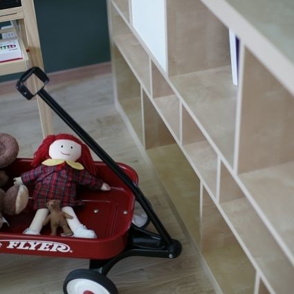 お子さんが小さいこともあり、将来の生活環境の変化に柔軟かつ簡易に対応できる空間構成にする為、壁や建具による強制的な仕切りではなく、高さの変化や家具による、意識の上での仕切りとなるように計画しました。