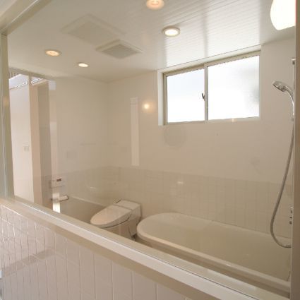 このコア内部のバスルーム以外には建具を設けず、オープンエアな空間構成とする事で、内部空間を相互にリンクさせています。更に、間仕切壁も徹底して削ぎ落とし、空間分節はコアのみで行っています。