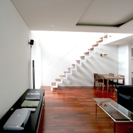 計画敷地の南北両方の敷地には、以前からの平屋建てが建ち、建物自体も老朽化が進んでおりいつ建て替わるか分からない状況。加えて、同時に分譲された東側の敷地もどのような建物が建つか不明。そこで当計画においては、コートハウス形式を採用する事にし、不確定な周辺環境に依存することなく、独自で快適な住空間を構成する事が出来ます。
