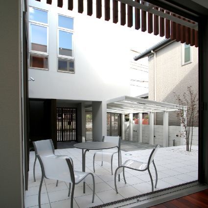 内外ともに白を基調とした事と、中庭側の大きな開口により、中庭及び各居室は、拡散光が溢れる明るく開放的な空間となっています。