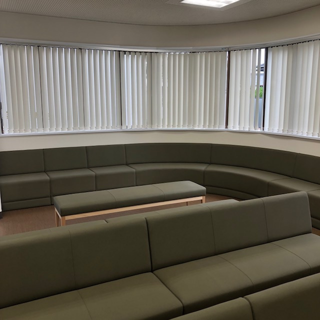 待合室は以前のピンク色のソファからモスグリーン色に変更し、フロアシートもフローリング調とすることで、落ち着いた雰囲気でお待ち頂けるように。