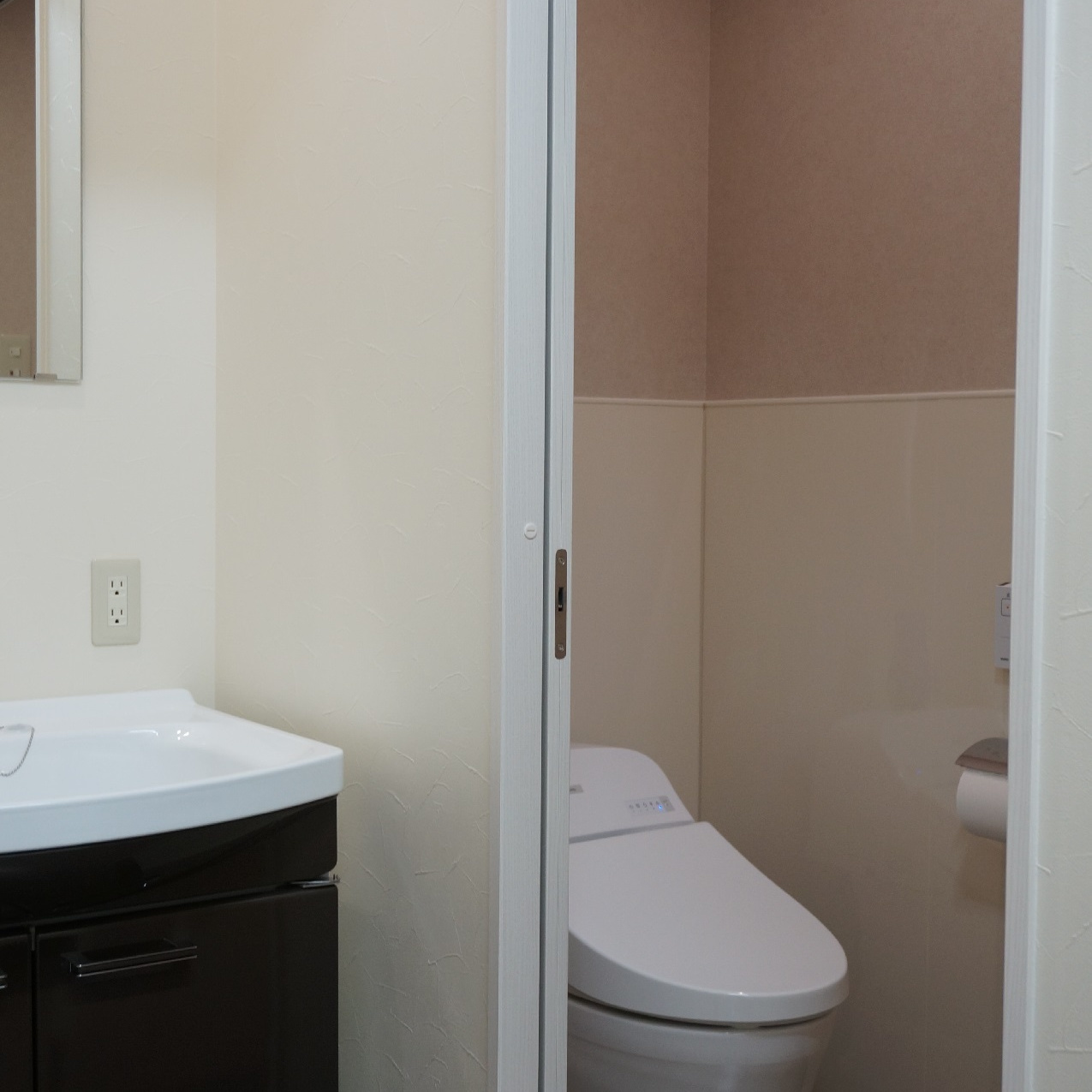 患者様用のトイレは、バリアフリーを考慮して車いす対応のトイレを新設し、男女トイレのレイアウト含め大幅に変更しています。