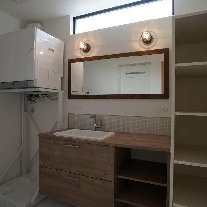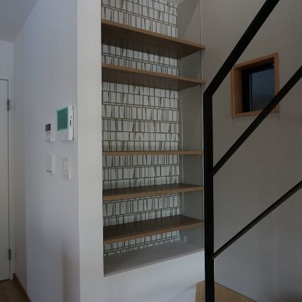 内部では奥様のご要望により、デザイン照明やアクセントクロスが随所に設けられています。