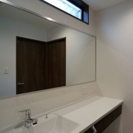 キッチンを起点として、洗面・ランドリー・浴室・トイレを集約させて効率的な家事動線とし、煩雑になりがちなランドリーと洗面を分けることで、不意な来客時にも手洗いを利用しやすくしています。